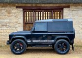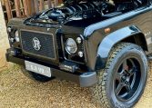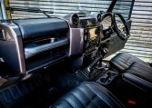 This one is based on an extremely rare LXV limited edition hi spec Defender hard top finished in Santorini black with contrasting Coris grey roof, benefiting from air conditioning, ABS – TC, remote lock and electric windows, with premium heated windscreen, black side runner steps.