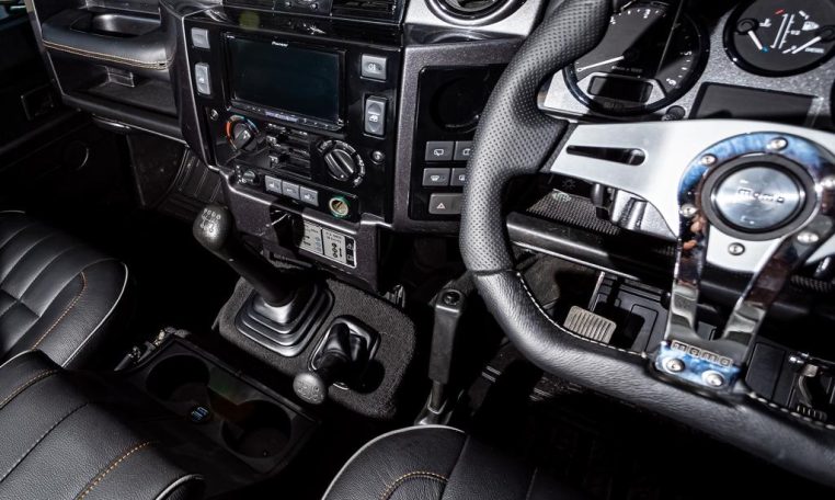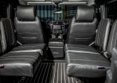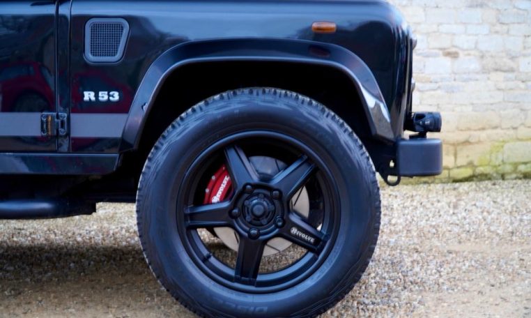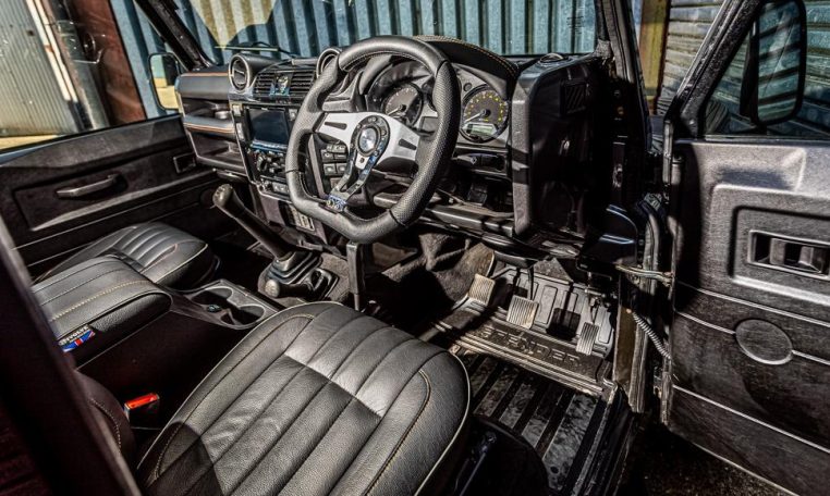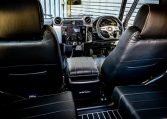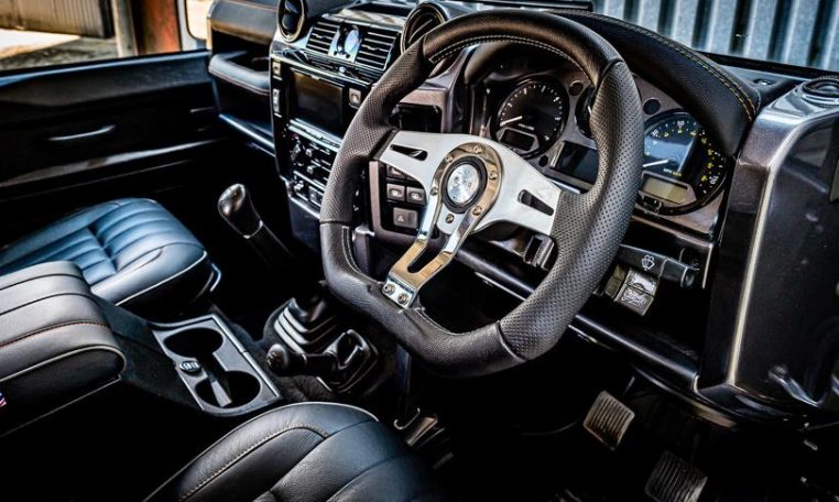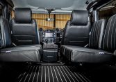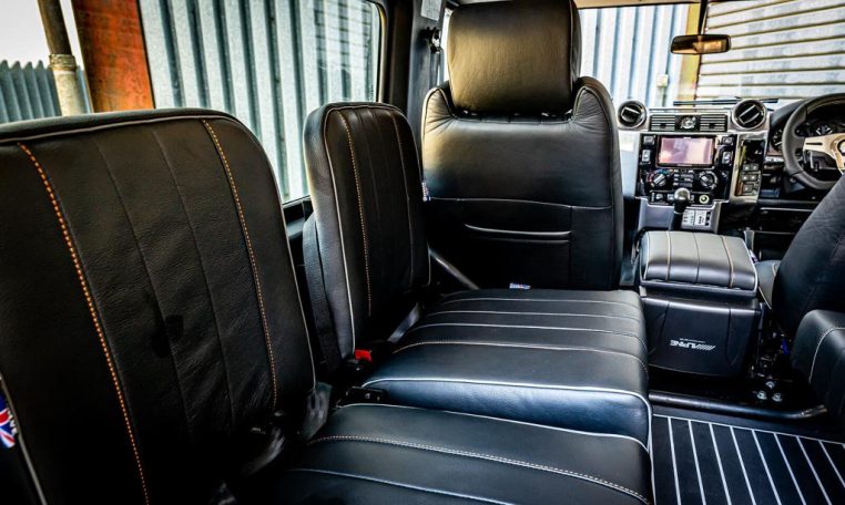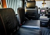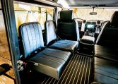 To stop we added our Rivolve 8 pot grooved and vented brake package, all driven by a silky smooth 6 speed manual gearbox behind our 355 BHP petrol V8 with a side twin exhaust. 6 riders can climb aboard with 4 inwards facing rear seats to make it a true 6 seater, anthracite teak rear waterproof floor, fully sound proofed with symphony sound system and MOMO sports steering wheel, panoramic side windows, rear NAS tow step bumper, Coris grey smooth cover plate all aid a fabulous classy purposeful individual Defender look.