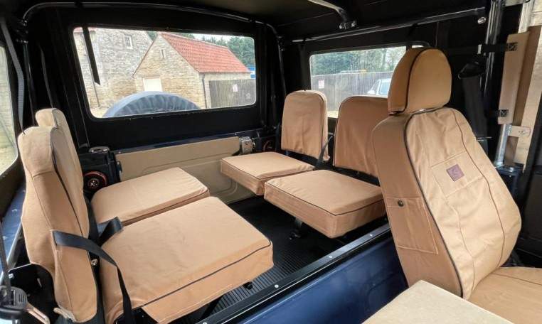 We are delighted to offer a time piece gem of a Defender. Manufactured in 2001 as 300TDi row specification. Been with same owner pretty much since new and barn stored with almost no use, thus ONLY 15,000 miles recorded – 24,140 KMs. Finished in LR Caledonian blue with techno cloth seating for 6 and air conditioned. We are able to offer as original station wagon configuration plus further Retro classic enhancements or convert to full NeneBuilt bespoke soft top potentially in contrasting sand mohair or canvas with or without side windows.  Please enquire for further help and advise.  £ P O A