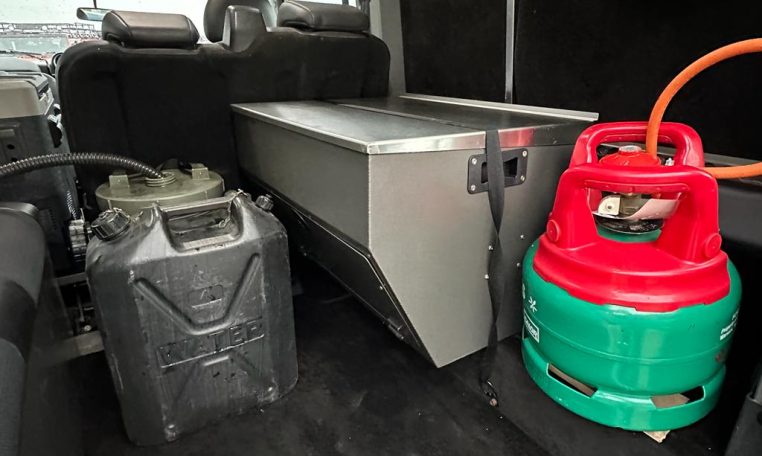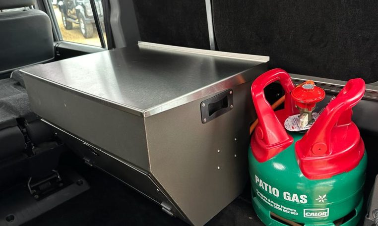 The heart of this great solution is our CamelbaC cooker pod. Designed to easily fit in the rear of your Defender 110 cabin or be detached and refitted on the outside rear of your Defender, potentially under the awning to allow outside cooking, food prep and cleaning down afterwards. Made from high quality alloy folded and welded to huge the rear seatbox of your Defender with integrated Dometic twin burner sink unit with ceramic lid. You can set it up to draw gas and clean water from portable 20 litre cans and LPG bottle for inside use or redeploy it for use on the outside of your Defender with ease. All finished in durable grey anthracite powder coating. Optional colours upon request at further cost.