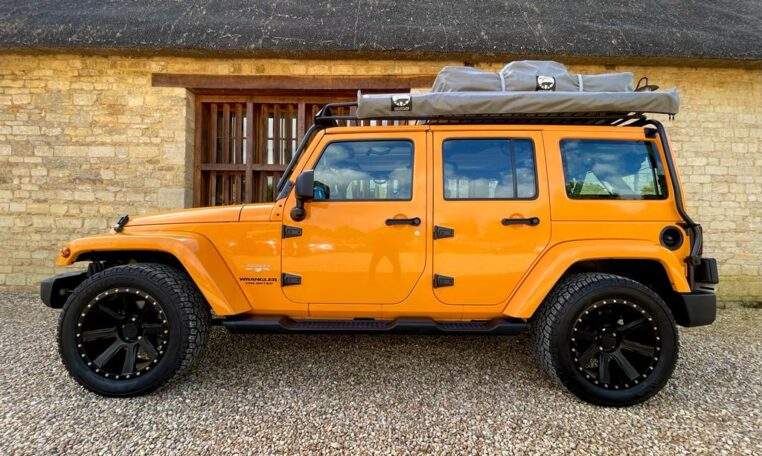 We are pleased to offer this very unique opportunity to acquire a very well appointed ready to camp and explore Wild Jeep 3.6 V6 petrol automatic Wrangler. Benefiting from our Wild Jeep enhancements: Wild grille – 20” multi spoke alloys, climate controlled A/C, cruise control, double din hi quality sound system, adjustable steering wheel and removable front roof panels. The whole roof panel may also be removed for summer fun if one wishes to remove the expedition roof rack and supports. For now you may take advantage of the 1.4 metre fold over roof tent and side awning. With only 101,713 Kilometres recorded from new. ( 63,201 miles ) ready for your next adventure. Please note this vehicle was previously sold new in the UAE and since imported and registered on the U K. Please enquire for further help and advise as over the years we give built and supplied lots of Wranglers. A great alternative to the LR Defender offering far greater comfort, automatic transmission and great value for money.