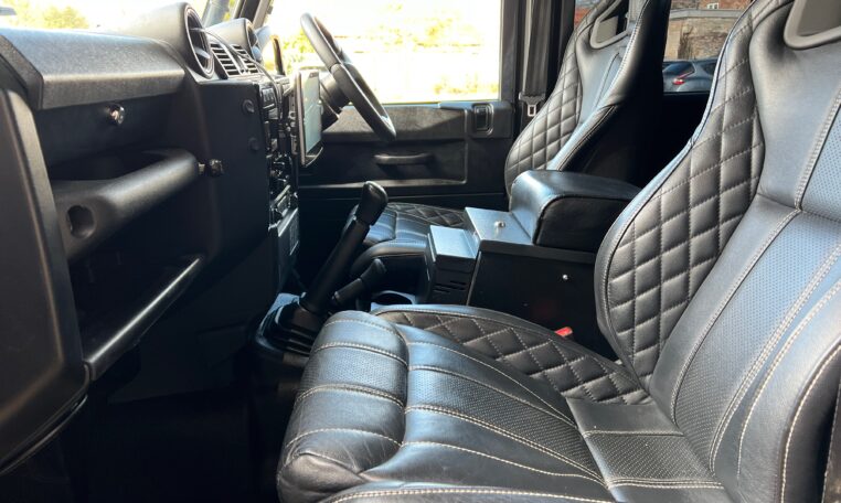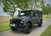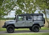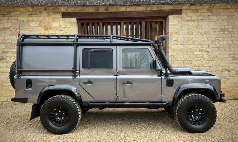 We are pleased to offer this very well thought out and appointed Coris grey metallic 110 xs Utility station wagon. Benefiting from all the usual XS refinements: ABS – TC, remote lock and electric windows and A/C. With 70,175 miles recorded. As you can see in excellent damage-free condition albeit needing some extremely minor cosmetic tidy-up jobs, which we plan to cover over the coming weeks. Still has the remainder of the Land Rover factory warranty with recent brand new engine, gearbox and clutch fitted by LR which has only covered around 1000 miles so as new. Please appreciate the extensive spread of upgrades and enhancements that will allow you to conquer the world or enjoy any off-grid camping trips, exploring at home and abroad. Major upgrades include; full external safety devices roll cage, HD plus 1.5” suspension set up, bowler black HD race alloys on BFG MT 285 x 75 x 16 tyres, HD rear wheel carrier and rear corner bumperettes with removable tow bar, front HD bumper with Warn Xeon 10.8 recovery winch, front steering guard, raised air intake, aftermarket comfort black leather front seats, an easy fix should you need to change the interior layout to refit the original LR 2nd 3 row seats to mark it a 5, 7 seater. Internally it also benefits from a full-length draw system with a flat load deck, double din head unit, MOMO steering wheel and steel centre lockable cubby box.
