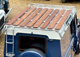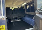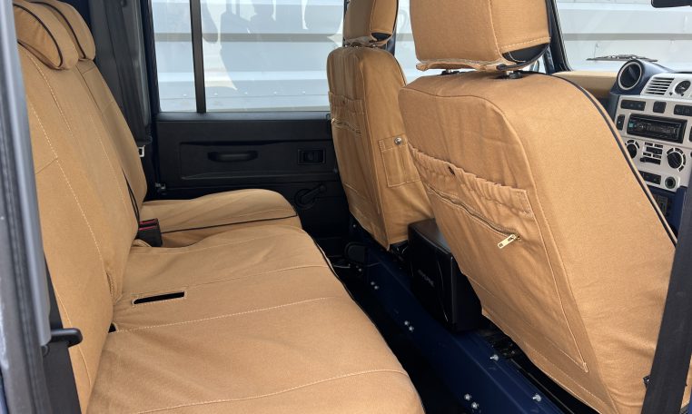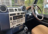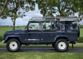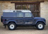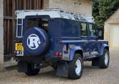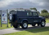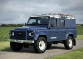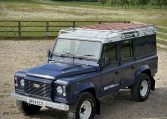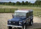 We are pleased to offer a very nice original Tamar blue 110 XS Utility station wagon with only 51,600 miles. Full XS spec including ABS – TC, remote lock and electric windows, heated seats and windscreen with air conditioning, wood rim steering wheel, silver Optimill heater controls and canvas dash pods. We have added our Retro classic wagon theme externally including our own Retro classic galvanised roof rack with teak decking and rear access ladder. Further retro classic enhancements include Melvill & Moon seat covers with canvas dash and cubby box to match, an Alpine white roof and steel deep dish HD wheel rims on BFGoodrich All-Terrain tyres. As it sits this classic look Defender 110 would be a great base for a number of further enhancements, our pop top camper conversions, full classic retro station wagon or soft top builds and more. Further rear seating maybe added to give you 9 seat capacity. Please enquire for further help and advice. £54,995