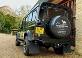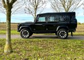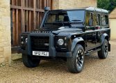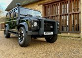 We are pleased to offer this stunning Santorini Black 110 Station Wagon with 7 seats. Previously supplied and enhanced by ourselves. With black part leather seating throughout, ABS – TC, remote locking, electric windows, A/C and heated front seats, XS side runner steps and dual finish 70th Anniversary alloys, A-frame nudge bar, Snorkel, NAS rear step and tow bar, front and rear light protectors, gradient privacy glass, MOMO steering wheel. Would be an ideal family fun, leisure Defender or a great starting point for further comfort, styling and performance enhancements via Rivolve.com or our pop-top camper conversions. Please enquire for further help and advice. £37,495