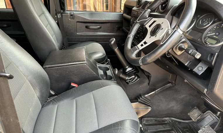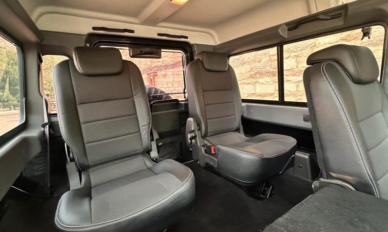 We are pleased to offer this stunning Santorini Black 110 Station Wagon with 7 seats. Previously supplied and enhanced by ourselves. With black part leather seating throughout, ABS – TC, remote locking, electric windows, A/C and heated front seats, XS side runner steps and dual finish 70th Anniversary alloys, A-frame nudge bar, Snorkel, NAS rear step and tow bar, front and rear light protectors, gradient privacy glass, MOMO steering wheel. Would be an ideal family fun, leisure Defender or a great starting point for further comfort, styling and performance enhancements via Rivolve.com or our pop-top camper conversions. Please enquire for further help and advice. £37,495