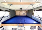 Due to the extra length of the camper the bed can be left out permanently with ample ventilation, roof mounted extractor fan, mosquito window nets and blinds.