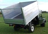 New, removable dropside tipping body and roof rack, new Land Rover Galway green metallic paintwork, shot blasted and repainted chassis-running gear, one owner, optional tool boxes.