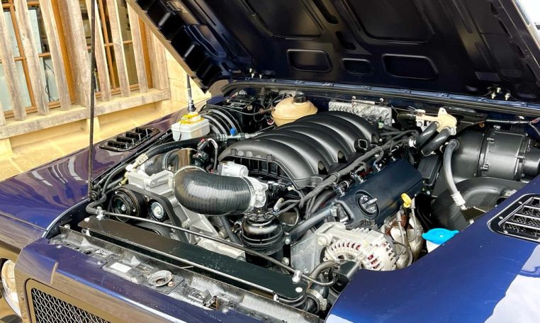 We are pleased to offer this previously Nene-Rivolve build 5.3 V8 petrol 6-speed manual Baltic blue 110 county double cab pickup. It benefits from extremely low mileage, stunning condition in every way and our L83 5.3 V8 instal giving you 355 BHP. Since installation, it has had very little use whilst being dry stored. Further enhancements include 18” black saw tooth alloys on MT tyres, white side, indicator and tail lights, LED headlights, satin black sports mesh grill, rear tongue cover and tow bar. Internally it benefits from elec windows, central lock, heated seats and sports steering wheel. Please enquire for further help and advice or check out our Rivolve V8 instal page below. Currently, it is not on site so best to call for further help and advice and potentially make an appointment if you wish to visit to inspect. £74,995
