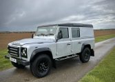 Selling on behalf of a client, we are pleased to offer this lovely Zermatt Silver, 110 utility station wagon and as you can see in great condition. With black part leather seating throughout, ABS – TC, remote locking, electric windows, A/C and heated front seats, black sawtooth alloys and black contrast roof and wheel arches, there is a dog guard that can be fitted too. Only 66,273 miles recorded. Would be ideal for a pop top camper conversion, family fun or for work purposes. Please enquire for further help and advice. £37,995
