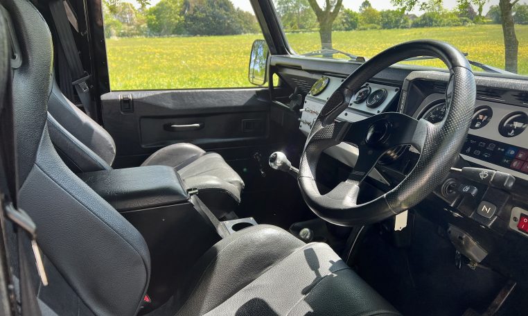 We are offering for sale on behalf of our client this lovely Java black 90 LR factory-built genuine V8 90 which as you can see has been extensively rebuilt and refurbished with a great spread of further enhancements. Refinished in LR Java black with black sawtooth wheels, black alloy roof rack with Lazer light bar, LED headlights and white light side, rear and indicator upgrade, a full set of black alloy billet Optimill door hinges and handles, fully carpeted with centre dash upgrade, alloy switch and dial faces, MOMO steering wheel and so much more. 65,342 miles recorded. Please enquire for further help and advice as we are selling on behalf of our client. U S A exportable. £ P O A