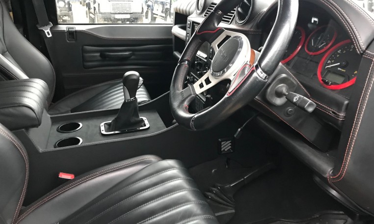 We are currently building a LEFT HAND DRIVE Defender with ONLY 800 kilometres from new which has been in storage since manufacture, finished in Santorini black with NeneBuilt Rivolve front grille 18” dual sport Rivolve alloys and panoramic side, rear glass with graduated tint. To be driven by our GM LT4 700 BHP supercharger V8 install backed up by silky smooth 8 speed automatic gearbox, three limited slip heavy duty differentials, high torsion driveline. Our proven sport wagon Fox racing suspension package with specification to be agreed to suit your taste and lifestyle. We have also fitted our unique to NENE modified 2nd Row seating floor to enable 2nd Row seating to be moved back a further 120mm to create further passenger leg room and comfort with option to have 4 x luxury bespoke full electric movement seats or leather trimmed 3 seater Defender 2nd Row or 2 x rear to make full 7 seater. We like to think that our 33 years crafting Land Rover Defenders, having all the skills at our Cambridgeshire facility to cover, engineering, fabrication, interior trimming, fabrication, bespoke music and communications can give our clients from around the world the opportunity to own a truly unique Rivolve edition Sport wagon benefiting from industry leading enhancements for the greatest performance, comfort and style out there. Final build price based on final agreed specification and build incorporating interior, exterior and engineering specification to suit. Please enquire for further help and advise via andrew.hs@neneoverland.co.uk We ship worldwide so can quote to ship if required. Guide price £190,000+vat