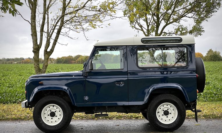 We are delighted to offer this stunning incredibly rare with ONLY 15,000 MILES recorded from new left hand drive 90 station wagon with that iconic 300TDi turbo diesel Intercooler. Finished in dark Caledonian blue with contrasting alpine white roof, techno cloth county cloth seating throughout, air-conditioned with and side steps. We have since further enhanced with our Classic Retro design deep dish Retro wolf wheels also finished in alpine white, LR flip down side steps, galvanised front bumper and Retro Classic front grille. Interior we have added our Melvill and Moon sand canvas seat covers throughout. Please enquire for further help and advice about this amazing Defender which would be an ideal CANADIAN IMPORT due to its age. We can arrange and handle all the shipping on your behalf. Would also be an obvious full soft top conversion ( see further example images ) with retro classic enhancements. £39,995