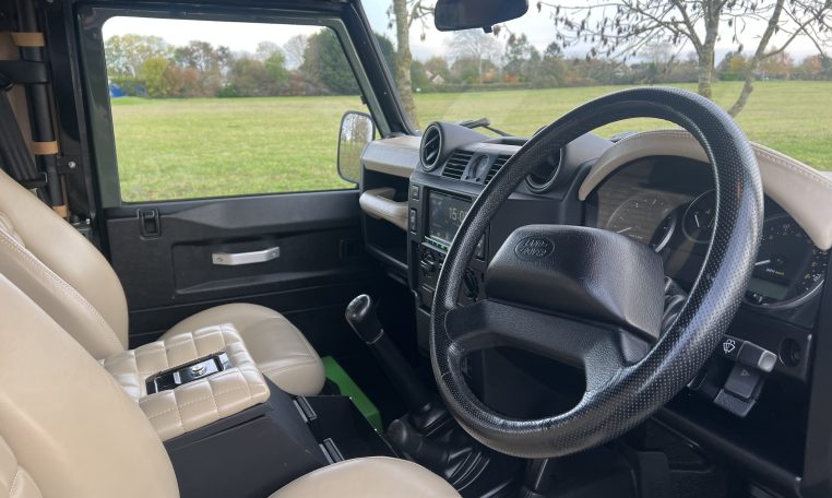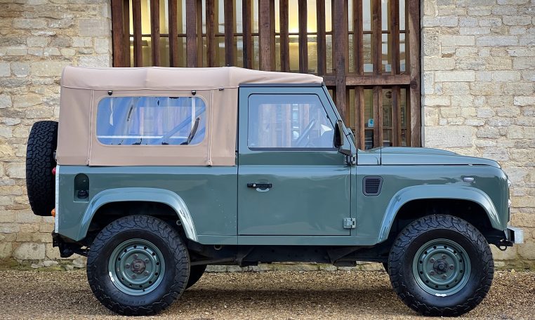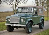 We are delighted to offer on behalf of a client, this stunning Keswick Green 90 Soft Top. Previously built and supplied by ourselves. Benefiting from cream leather heated seats, cream leather dash panels, Optimal door handles, Double Din stereo, upgraded surround speakers, subwoofer, reversing camera, rear bench seat or folding chair, and lockable leather cubby box. Our Retro Keswick Green steel wheels and BFGoodrich tyres, Galvanised rear corner capping. Skytag, upgraded alarm system, kill switch, pedal lockbox. A lovely-looking vehicle. 35,790 miles recorded. Please enquire for further help and advice. £33,995