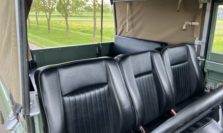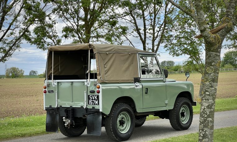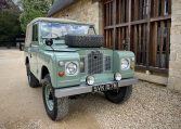 We are pleased to offer this series 3 short wheel base 2,25 litre 4 cylinder petrol soft top. Finished in LR pastel light green with contrasting sand soft top riding on limestone steel wheels. Internally it benefits from black vinyl front seats with matching rear bench seats to allow 7 of you to high tail it to the pub, park or social escape of your choice. It has previously undergone a lot of work including new black painted galvanised chassis, full-body strip, prep and paint refinish and further works. Please see the list below. We will have this wonderful cherished classic Land Rover with us later this month. For now please also enjoy images of a similar Nenebuilt and refurbished series 111 in the very same colour. Once we have SVK 157M onsite we will upload images of it. For now please enquire for further help and advice. £32,995